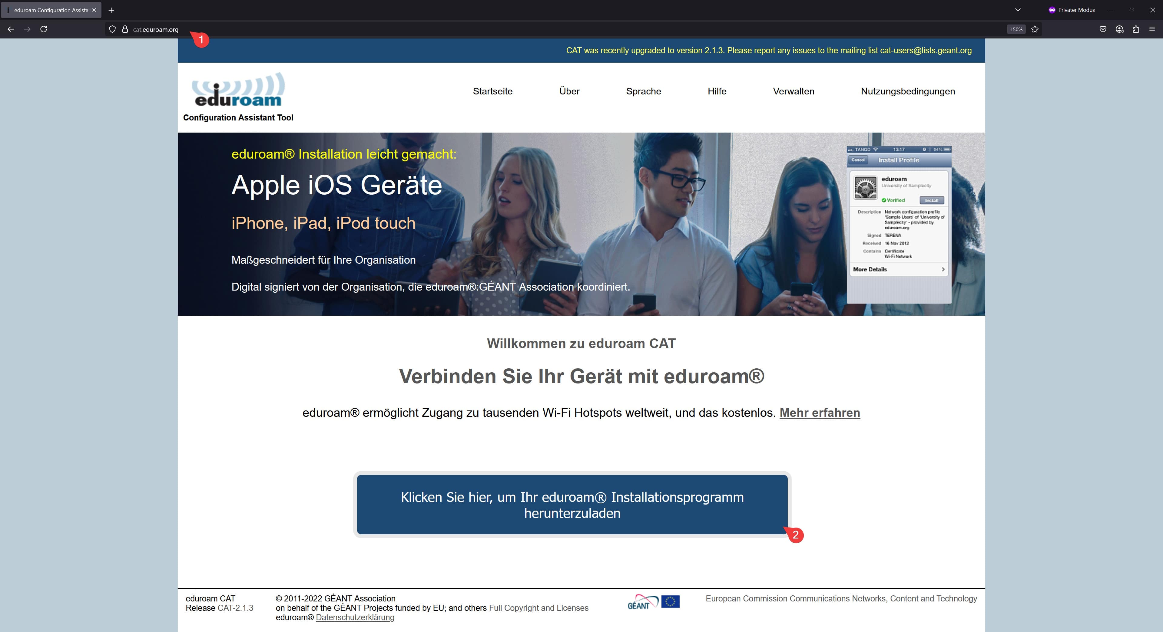 Nach Abschluss der Installation verbindet sich Ihr Gerät automatisch mit dem Eduroam-Netzwerk, sobald Sie sich in Reichweite befinden.